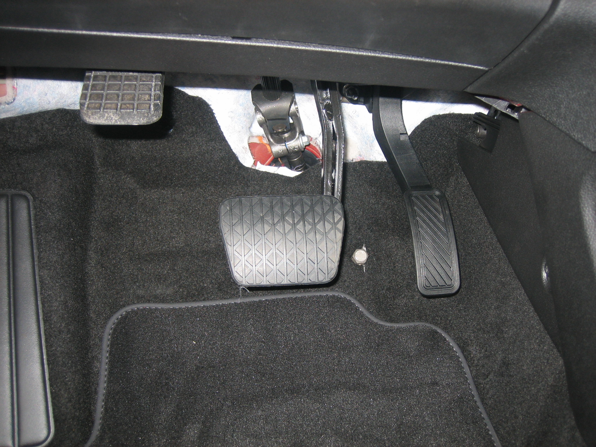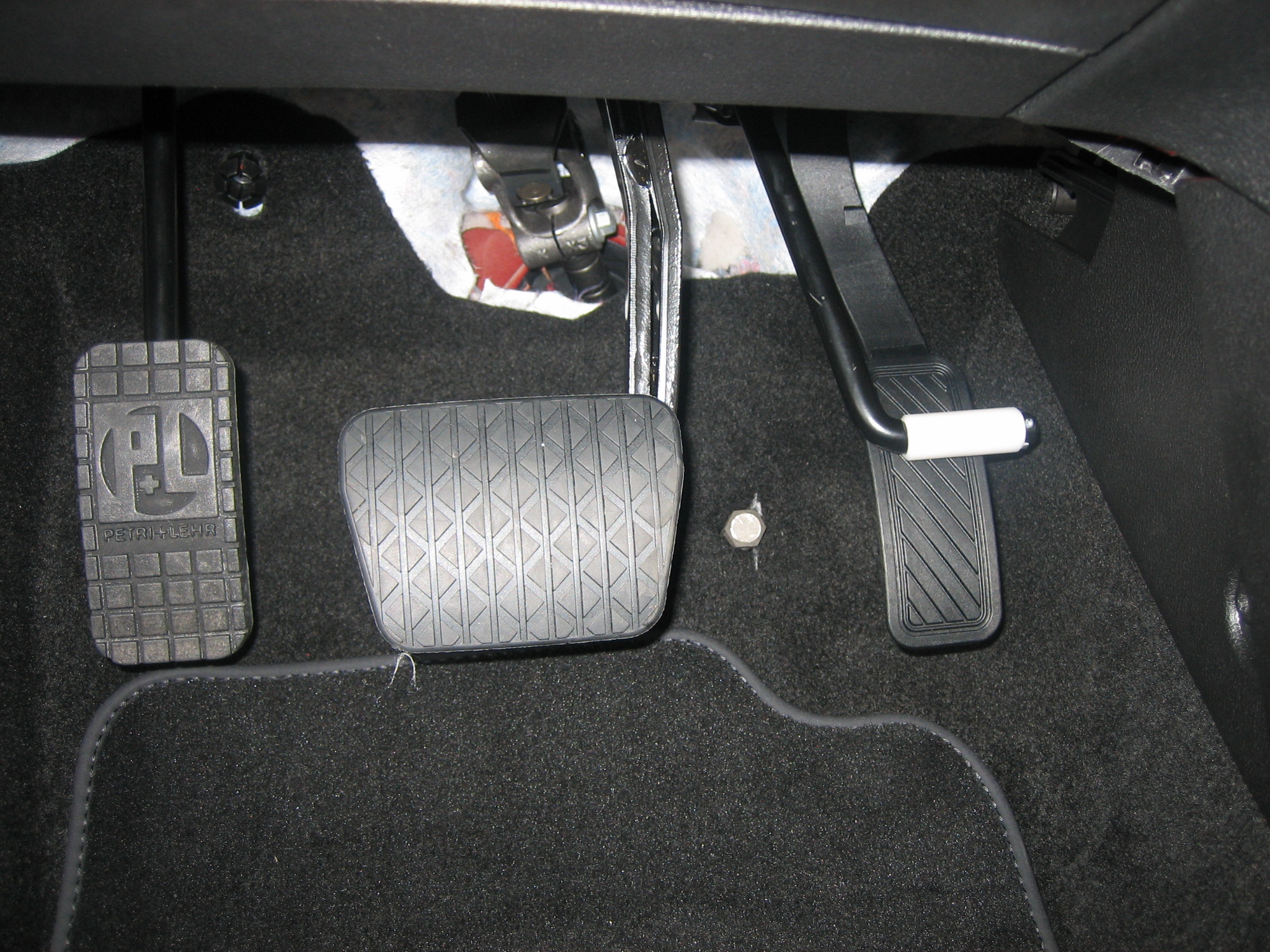 Das hängende Fußgas links wird mit einer Halterung z.B. an der Lenksäule oder der Spritzwand befestigt. Bei Druck auf die linke Pedalplatte wird über ein Gestänge das Originalpedal betätigt.