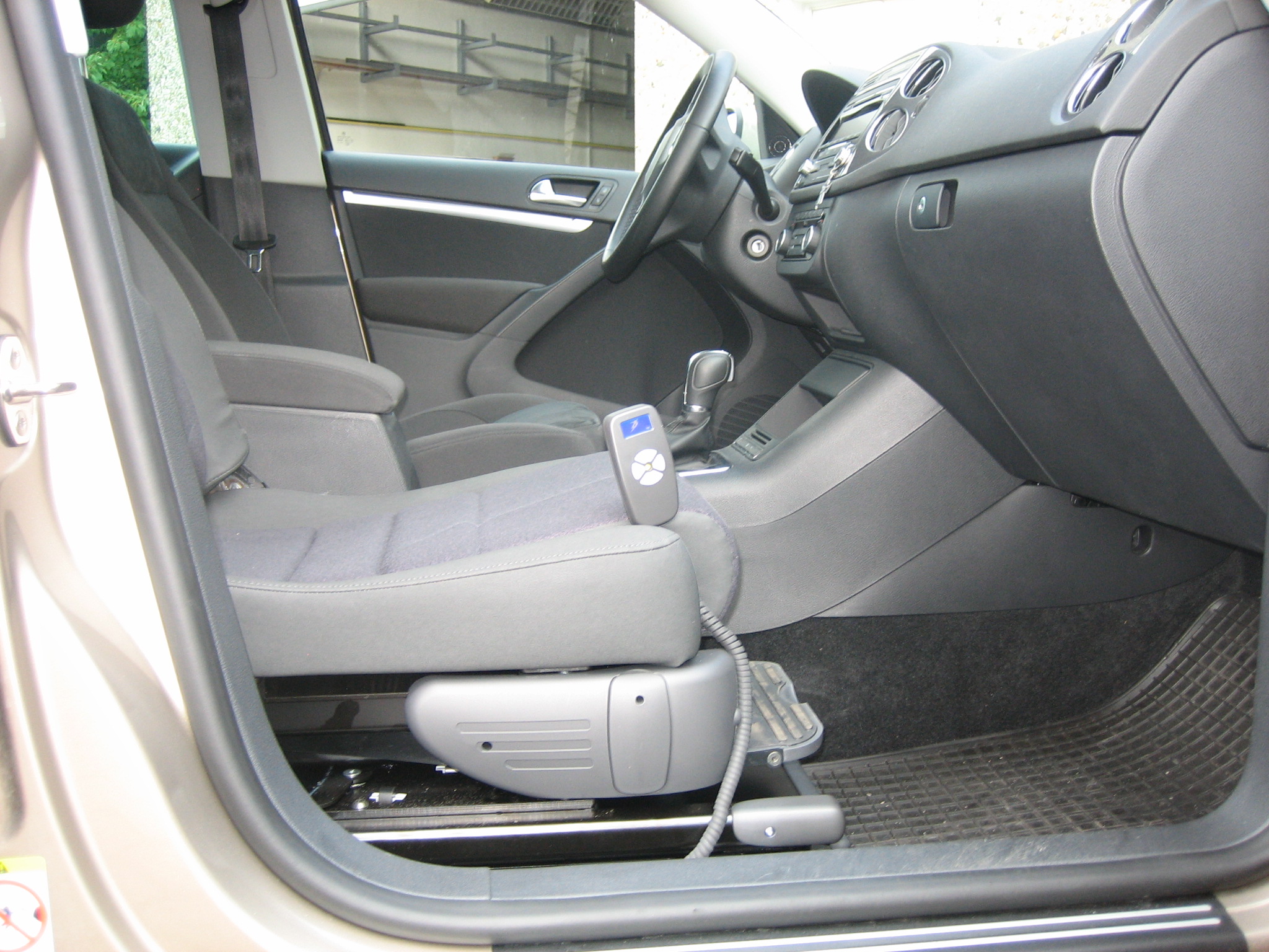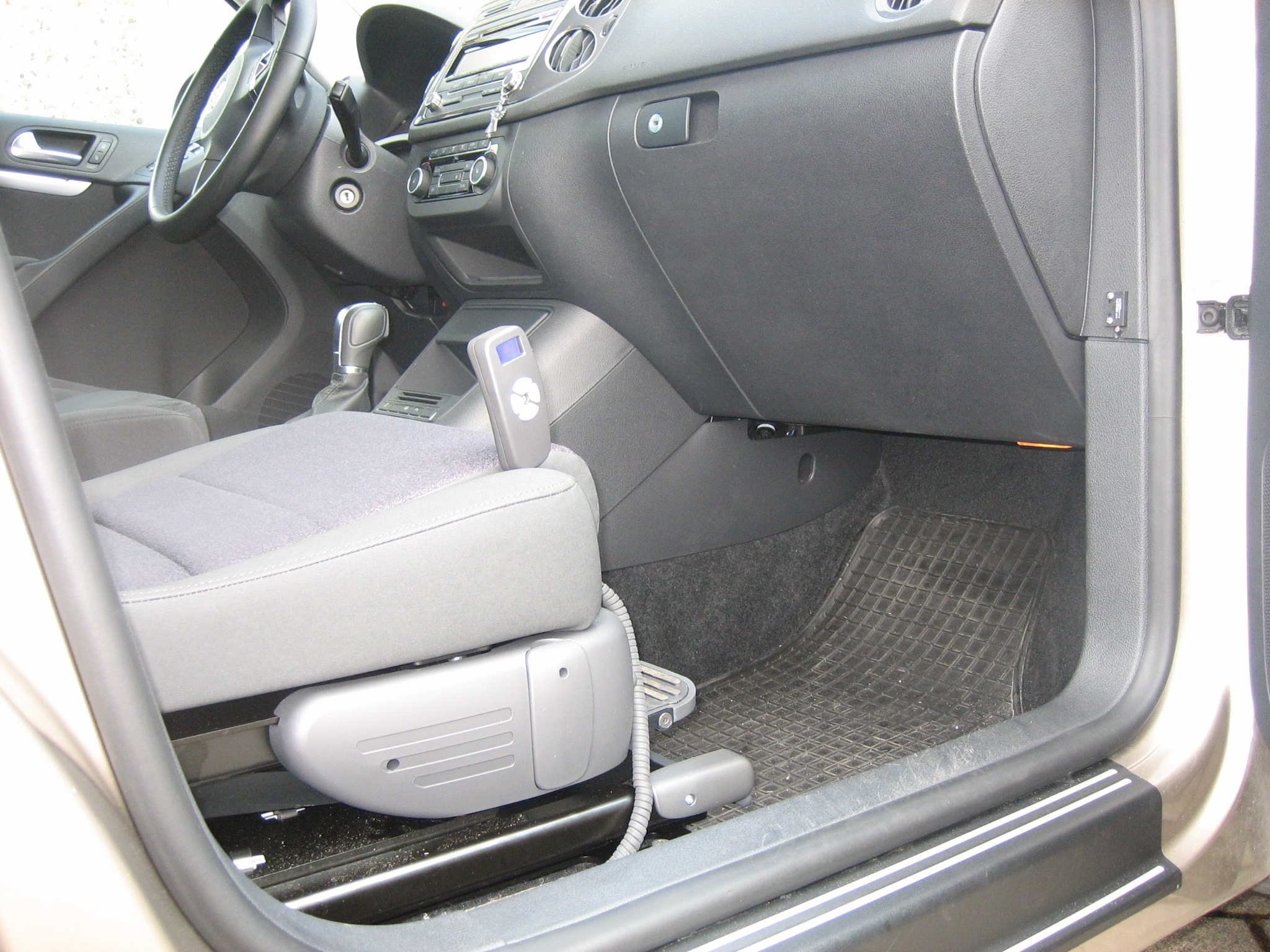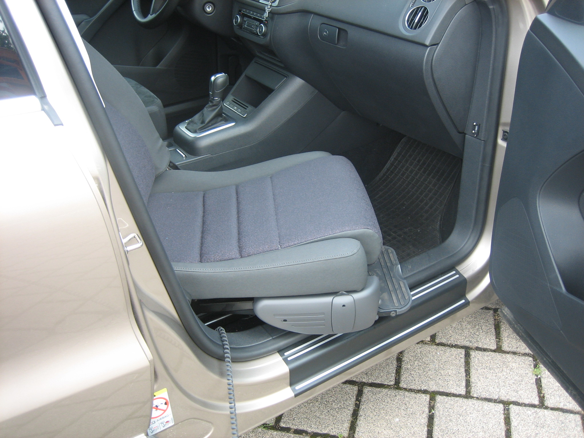 Der Turny EVO erleichtert den Ein- und Ausstieg, da der gesamte Autositz auf Fahrer- und Beifahrerseite ( hier die Beifaherseite ) aus dem Fahrzeug gefahren wird.