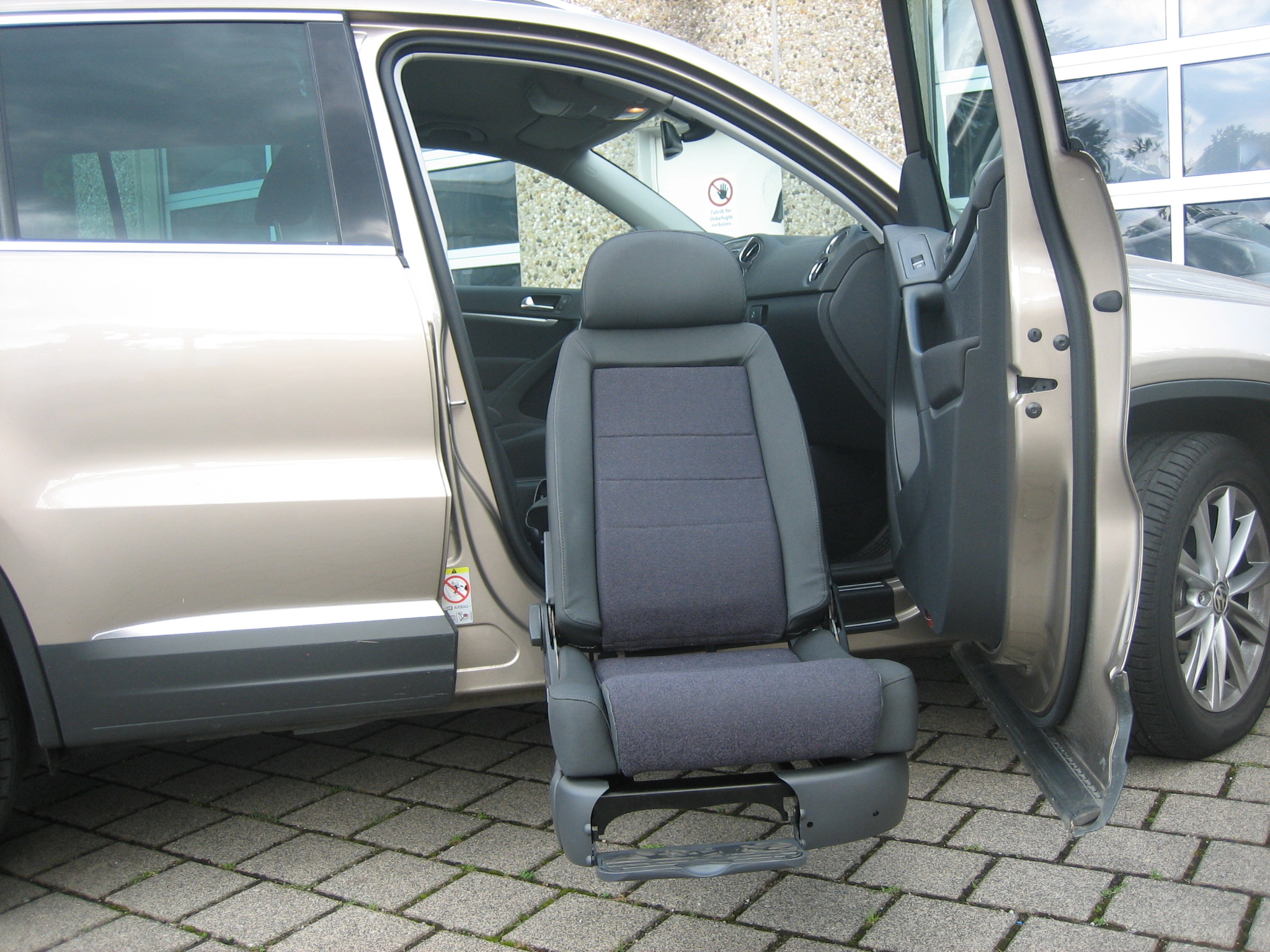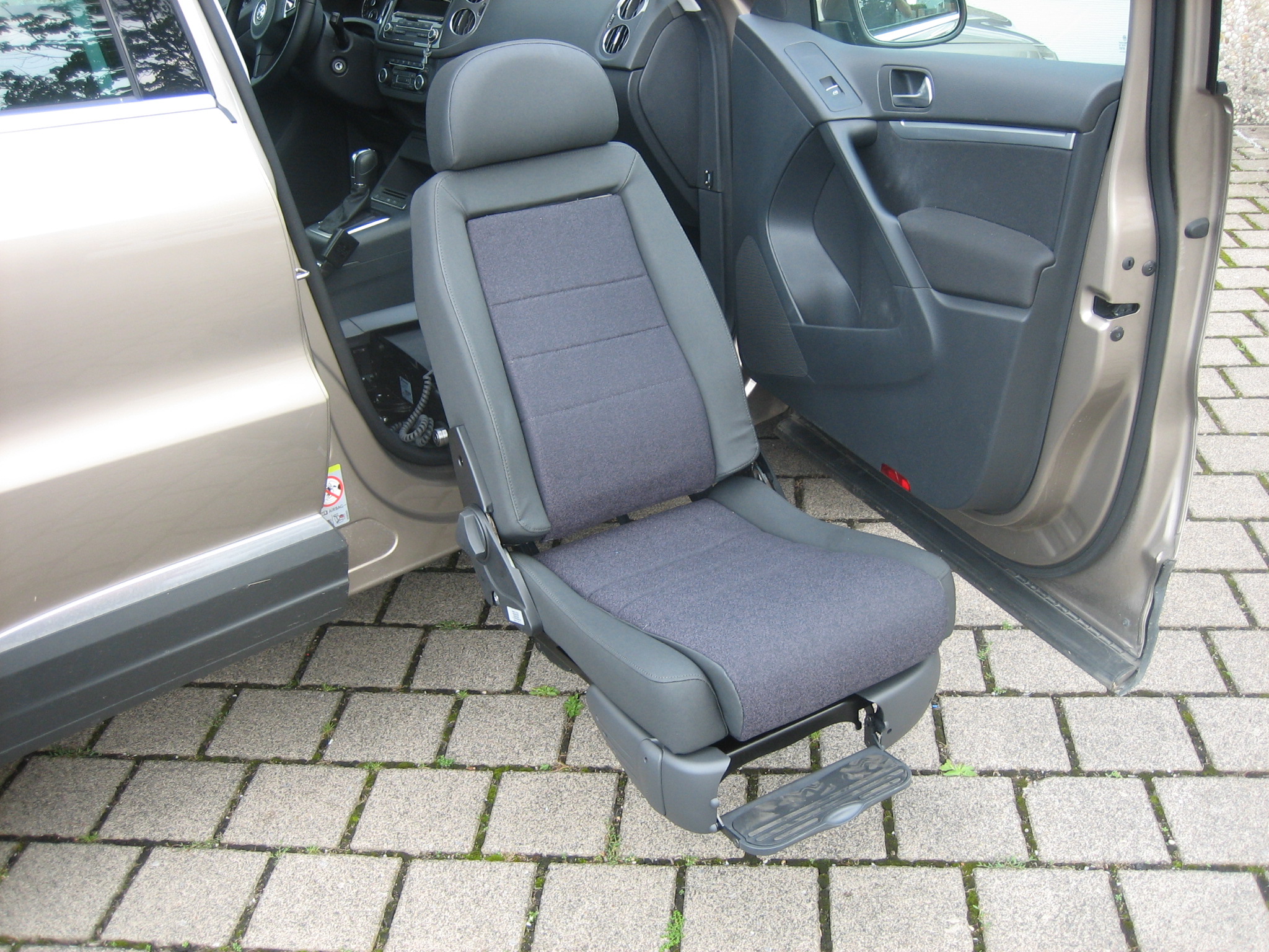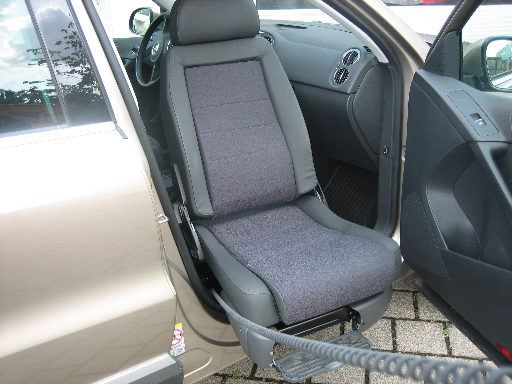 Der Turny EVO erleichtert den Ein- und Ausstieg, da der gesamte Autositz auf Fahrer- und Beifahrerseite ( hier die Beifaherseite ) aus dem Fahrzeug gefahren wird.