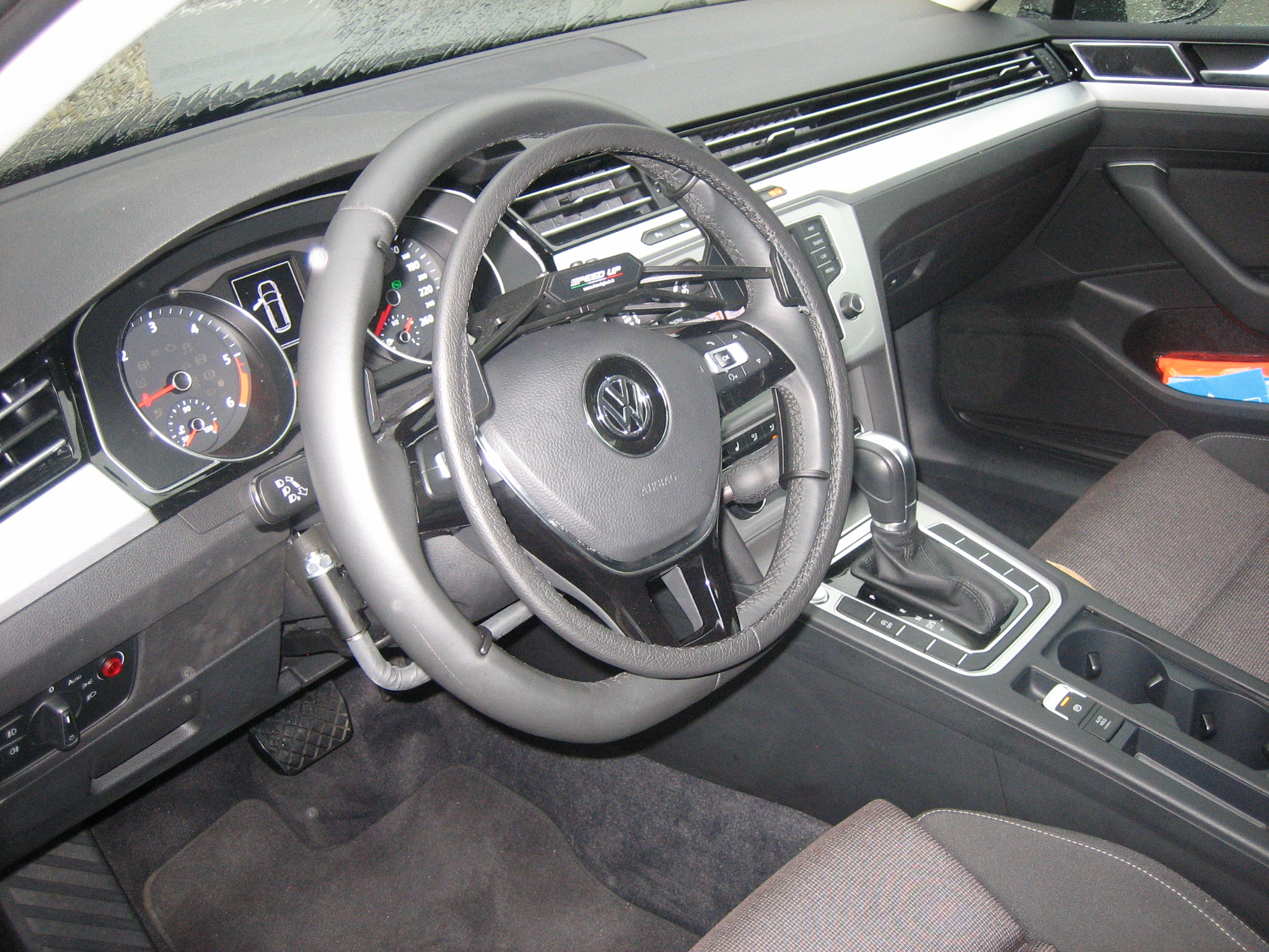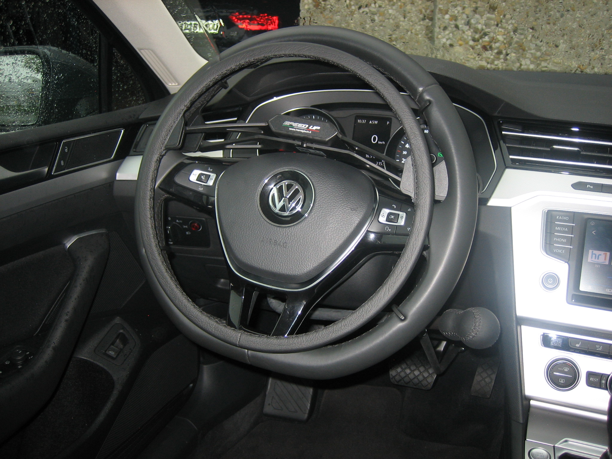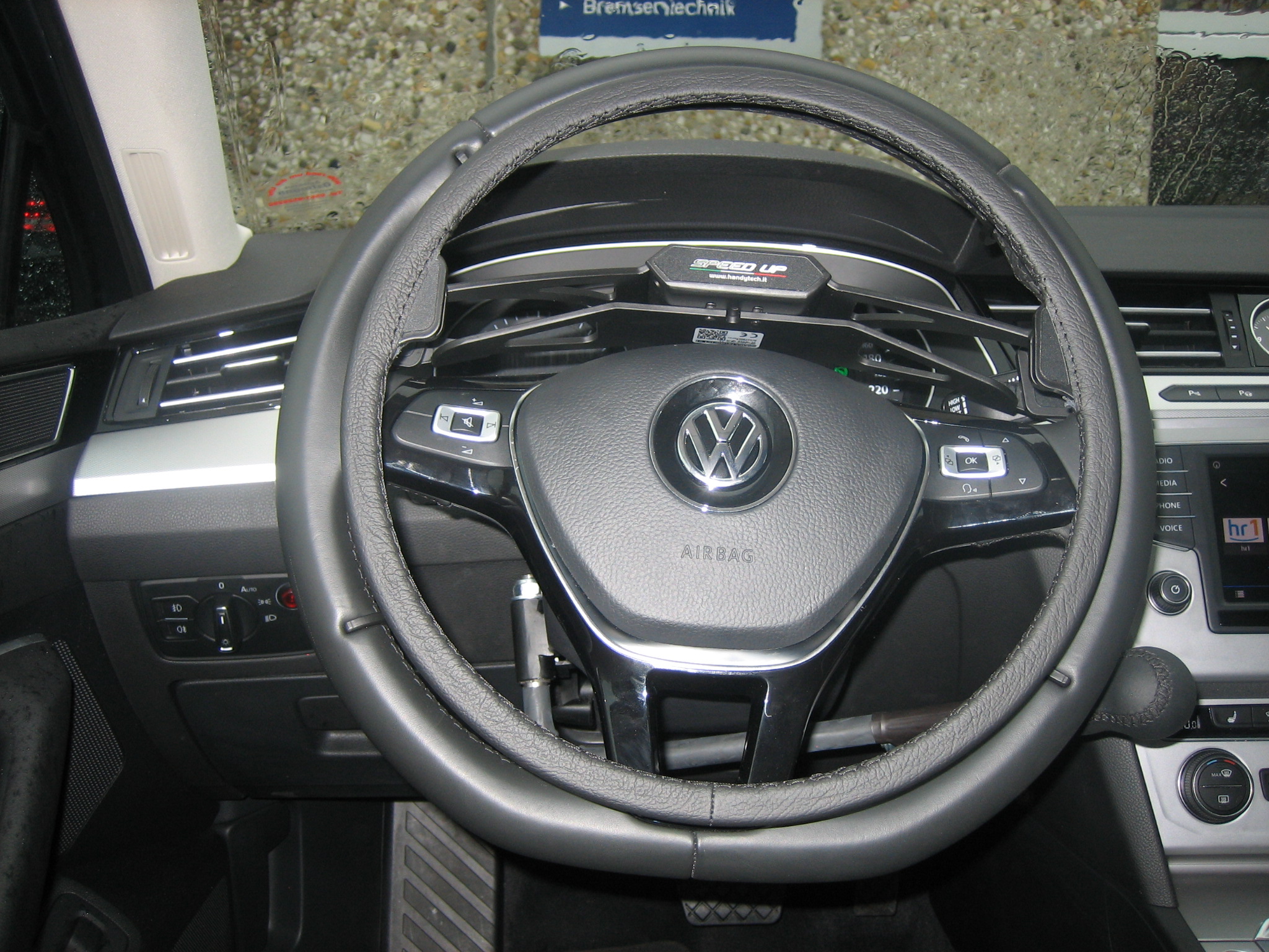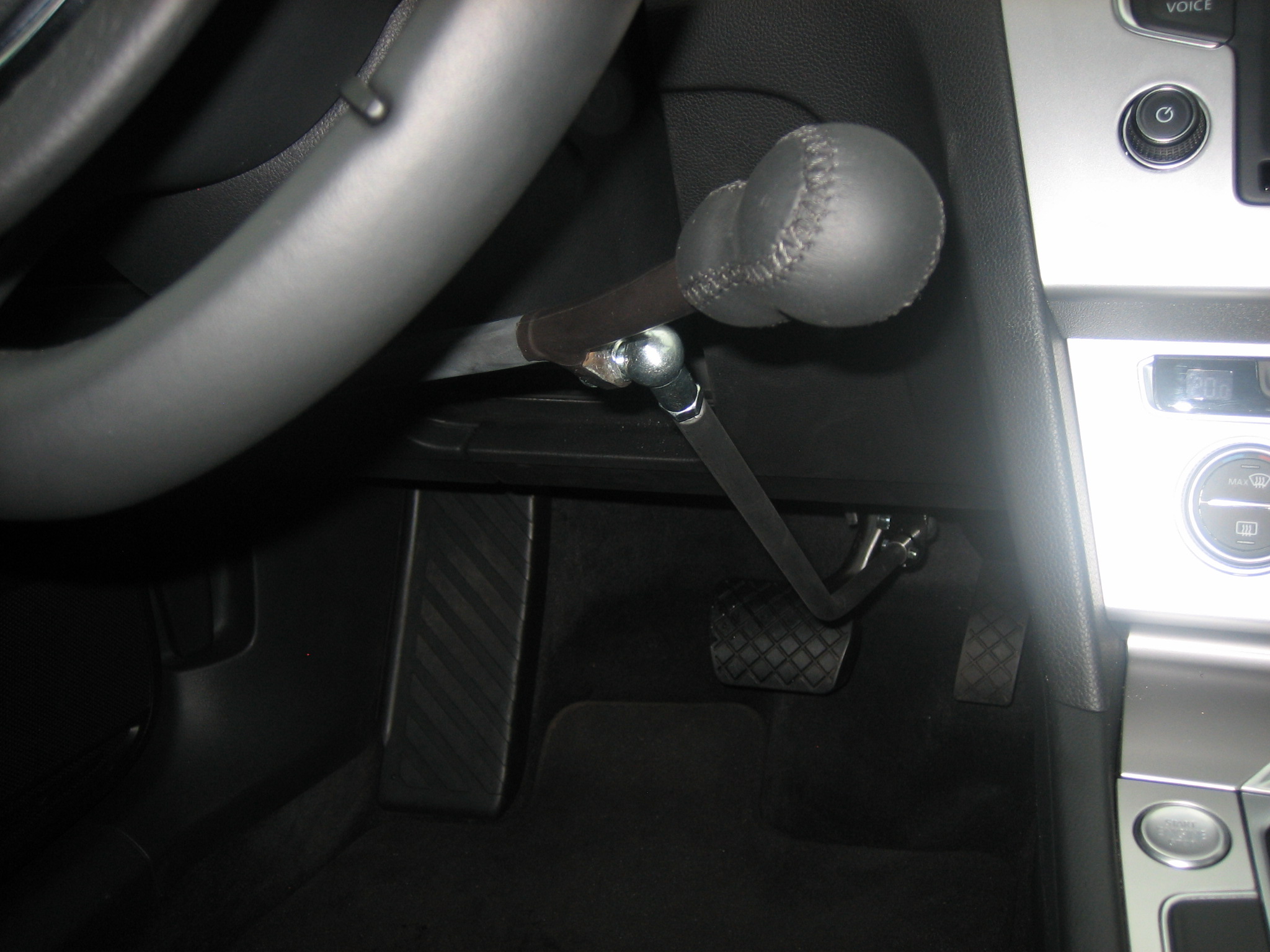 Dieses Fahrzeug wurde mit einem Sojadis Gasring am Lenkrad und einem Bremshebel ausgestattet.