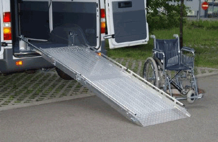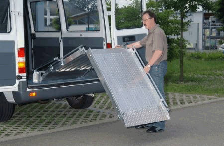 Rampen und AuffahrhilfenDie faltbaren Aluminium-Verladeschienen sind aus einer hochfesten Aluminium Legierung hergestellt. Die Konstruktion des Profils garantiert sicheres Befahren. Zusätzliche Sicherheit bietet der Antirutschbelag, der auf der Fahrfläche aufgebracht ist.