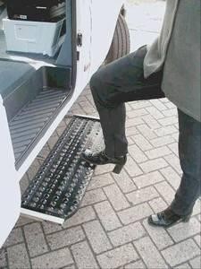 Elektrische KassettenstufeElektrisch betriebene, ein- und ausfahrende Kassettenstufe, die den sicheren Zutritt der Fahrgäste in das Fahrzeug verbessert.